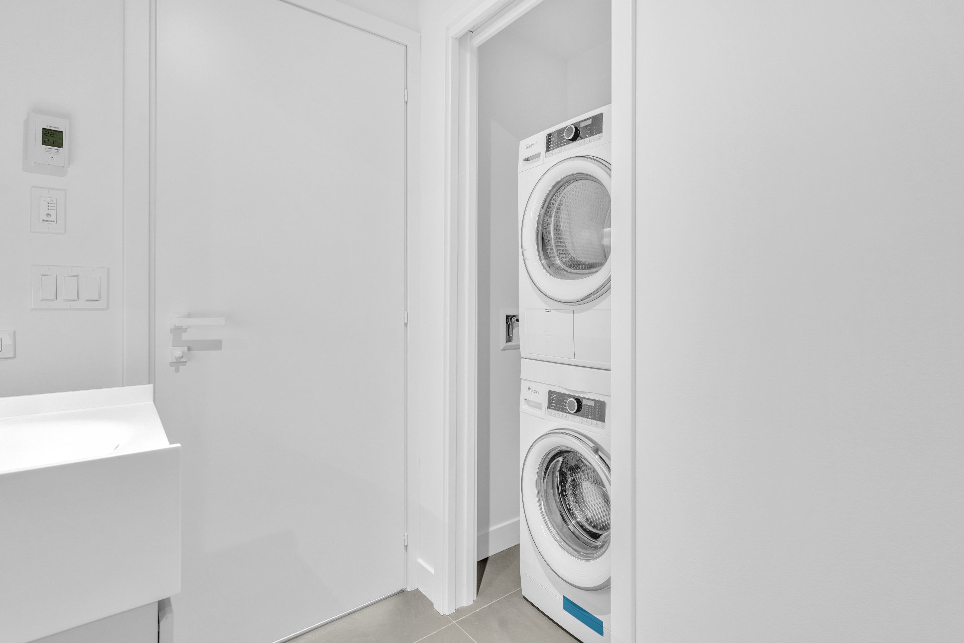 laveuse, sécheuse, micro-onde, réfrégirateur, four, stores et rideaux